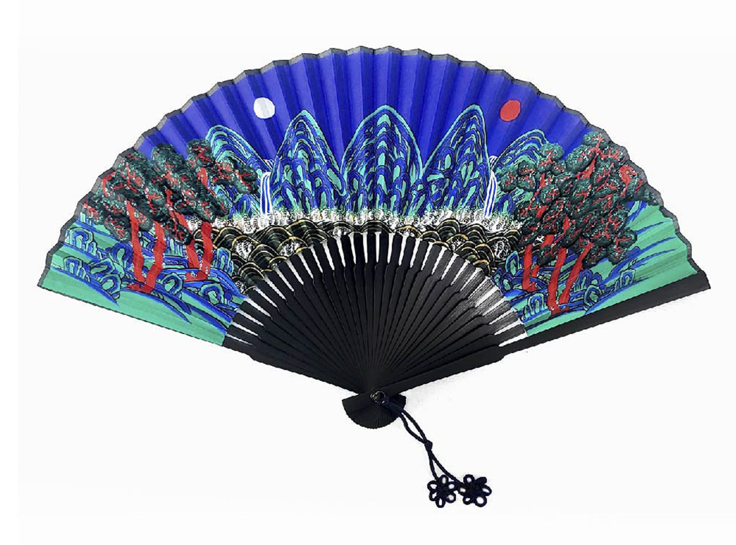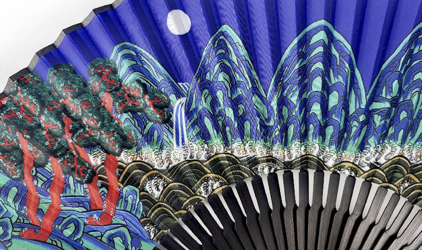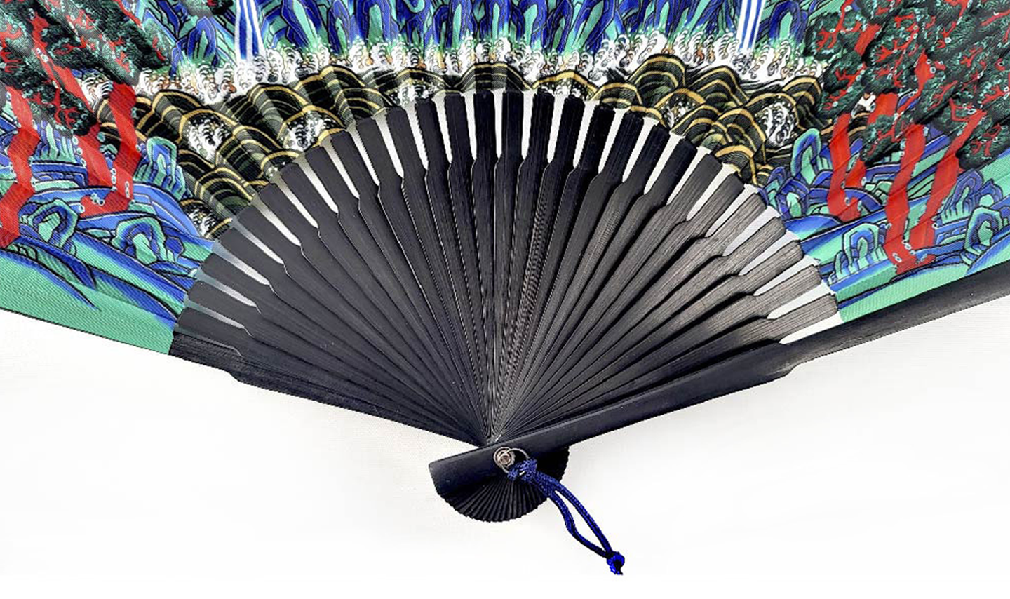 This is a handcrafted folding fan depicting representative works of traditional Korean folk painting and produced by a fan craftsman with over 30 years of experience.