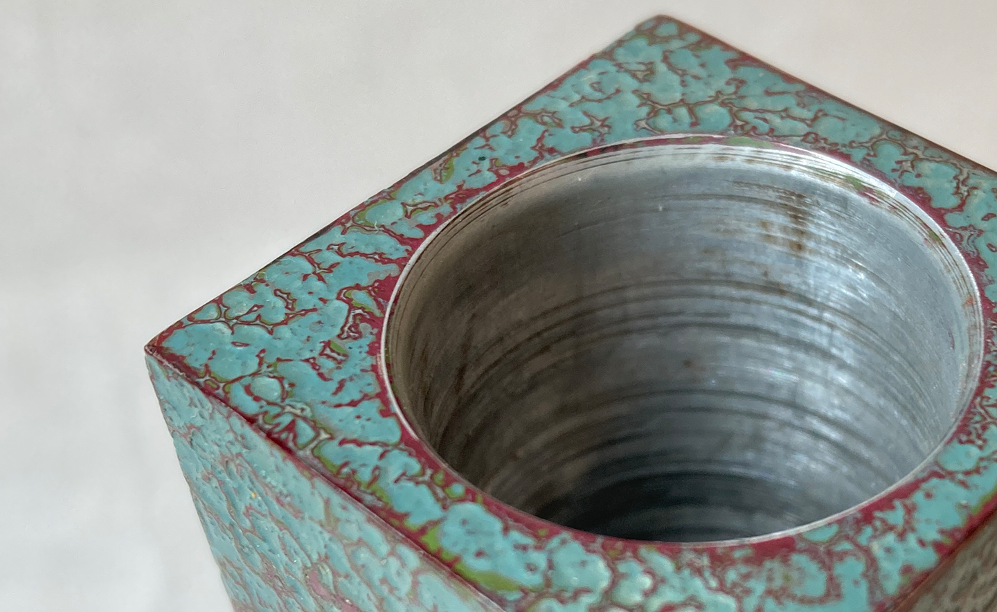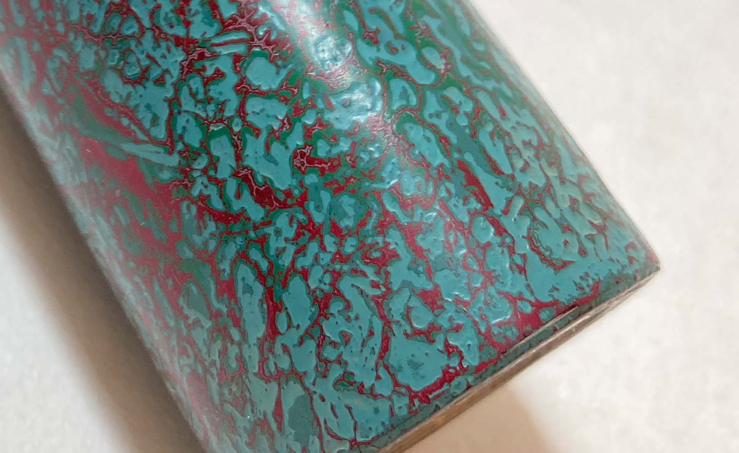 - 교칠을 하려면 먼저 옻칠에 두부, 계란 같은 단백질 성분을 섞어 옻의 점도를 높입니다. 그 점성을 이용해 다양한 텍스쳐를 만든 후 그 위에 여러 색의 옻을 발라 차곡차곡 색을 쌓아올립니다. 마지막으로 표면을 연마하여 쌓아둔 색이 드러나도록 함으로써 여러 색깔 층이 독특한 무늬로 나타나도록 합니다. 이렇게 교칠은 색을 어떻게 조합하느냐에 따라 개성 있는 색감과 분위기를 나타낼 수 있는 장점이 있는 매력적인 옻칠 기법입니다.