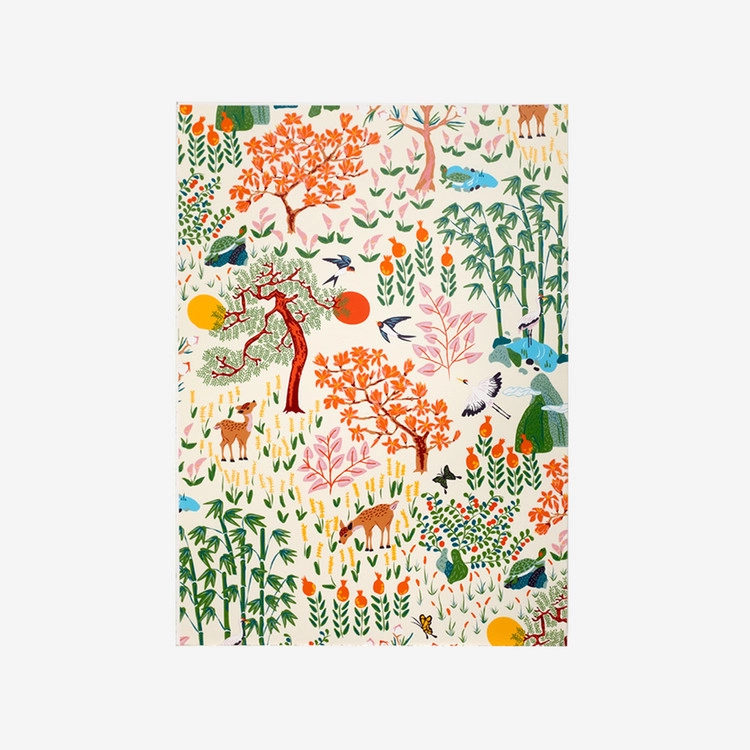 - 십장생도에서 볼 수 있는 문양을 현대적인 일러스트로 재해석하여 세련된 감각이 느껴집니다.
