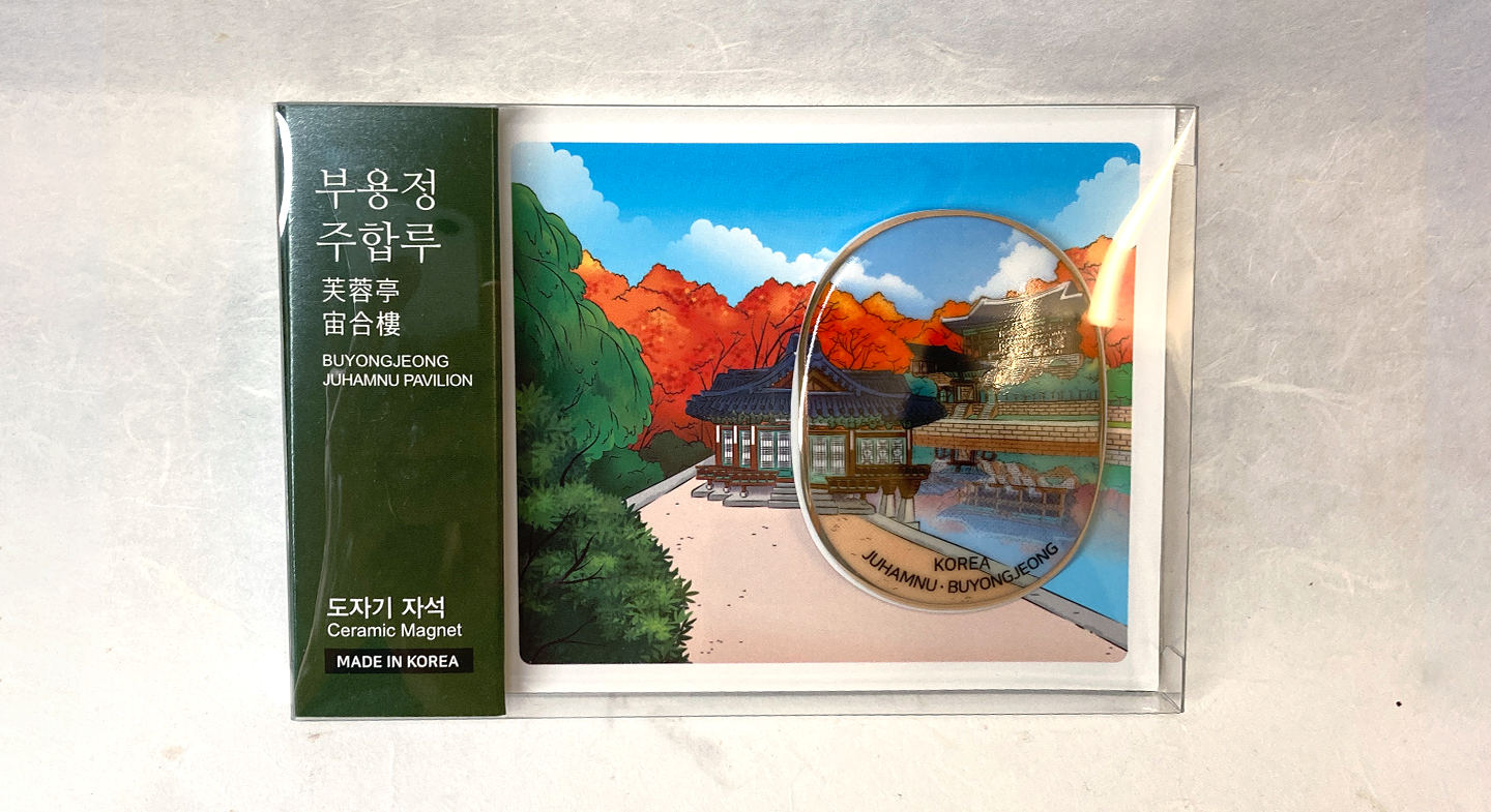 - 도자기 자석 위에 다 표현하지 못한 궁궐의 전경을 패키지 내지에 담아 패키지 자체로도 훌륭한 기념 마그넷이 됩니다.