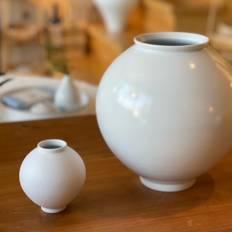 한국의 아름다움을 대표하는 백자 달항아리를 신동범 도예작가만의 감각으로 재해석한 달항아리입니다.