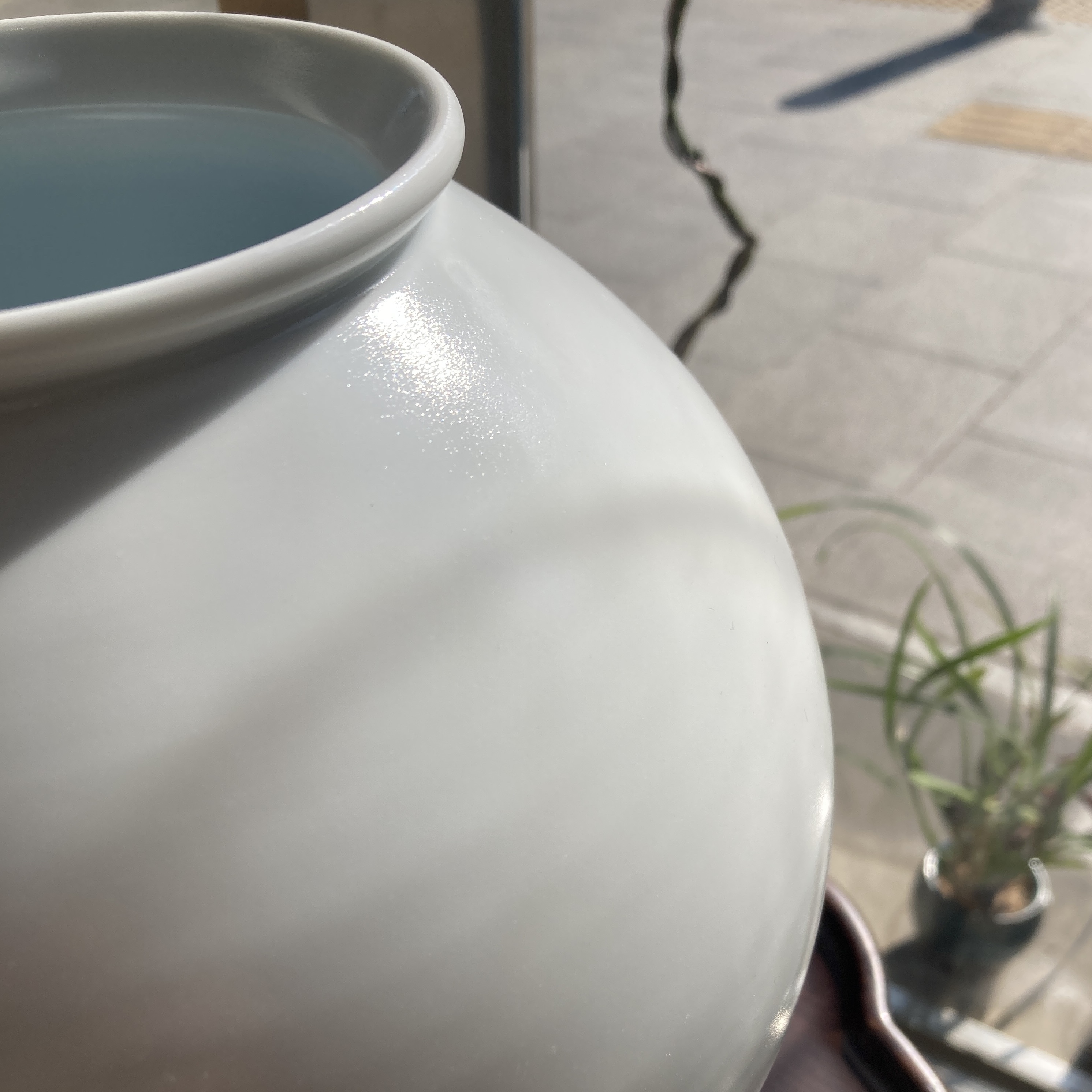 This is a white porcelain moon jar that represents the beauty of Korea, reinterpreted with the unique sensibility of ceramic artist Shin Dongbeom.