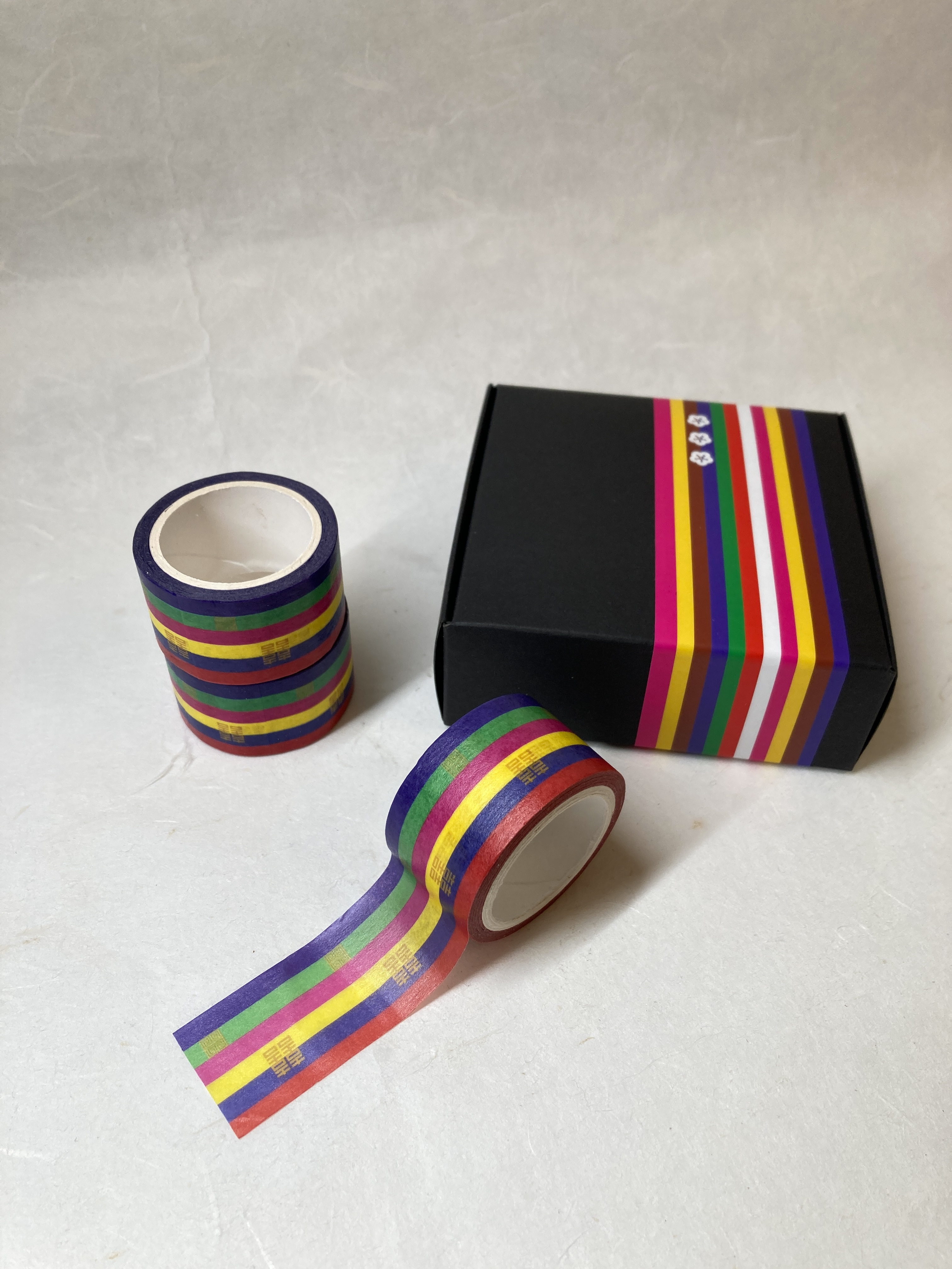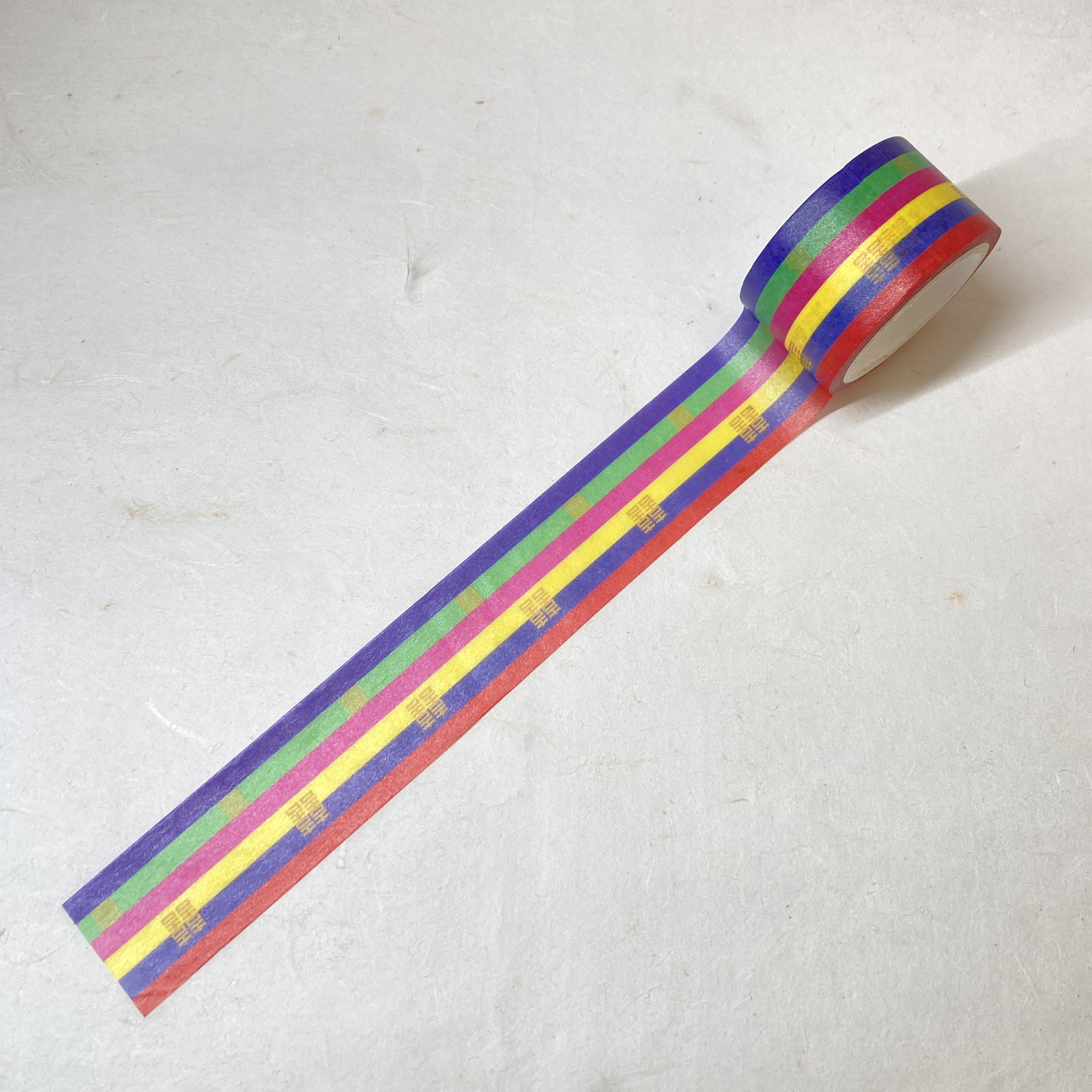 - 가장 한국적인 무늬인 색동 무늬를 현대적인 쓰임새로 활용할 수 있도록 만든 마스킹테이프입니다. 종이 재질로 선물포장, 다이어리 꾸미기 등 종이로 이루어진 제품과 함께 사용하기에 좋습니다.