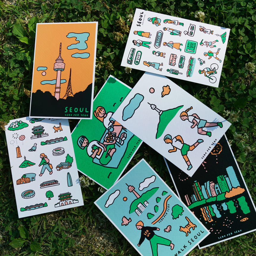한국의 다양한 장소와 사물들을 아기자기한 일러스트로 표현하였습니다.
