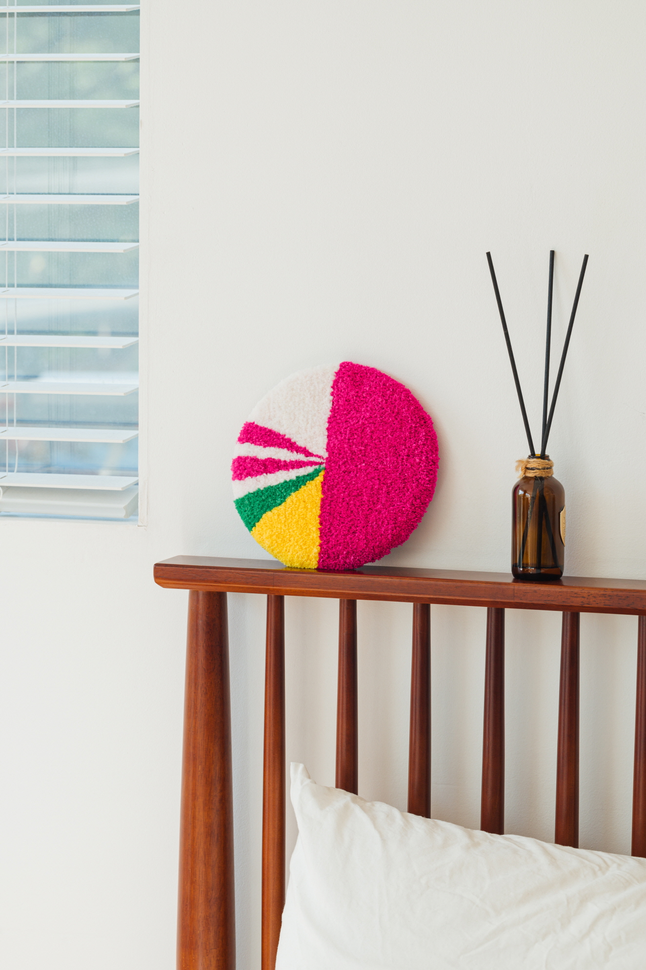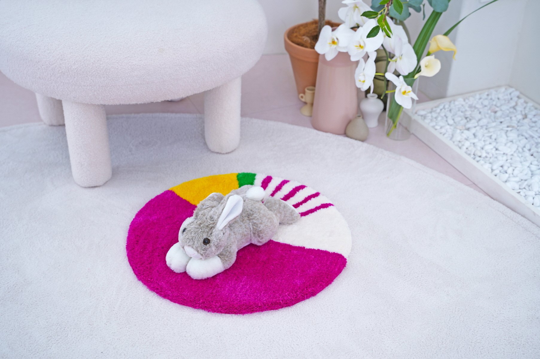 한국 전통 사탕인 옥춘의 문양을 핸드터프팅 기법으로 제작한 러그입니다. 사랑하는 이들의 매일이 화사한 봄이기를 바라는 마음을 담아 디자인하였습니다.