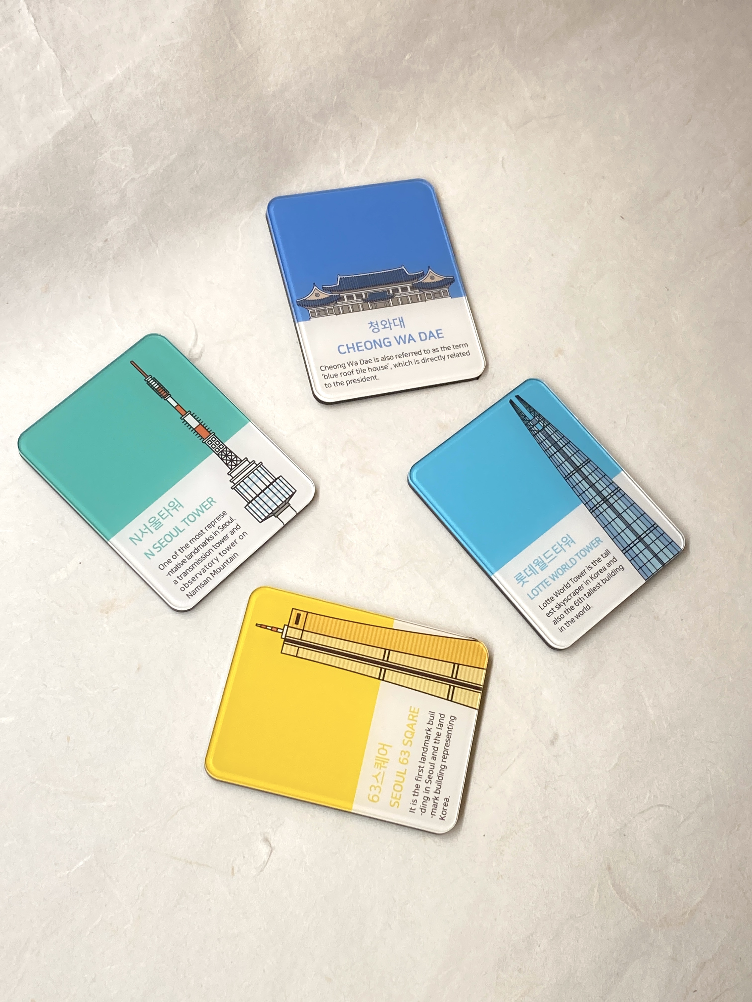 - 한국의 현대적인 랜드마크와 상징을 담았습니다.