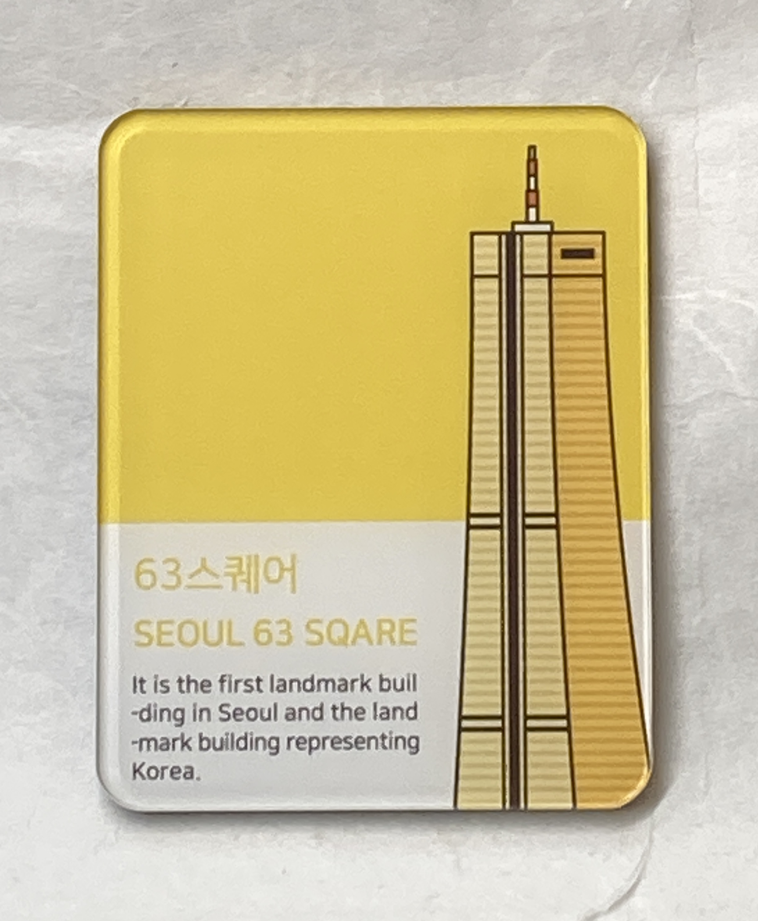 - 쉽게 색이 바래거나 부서져서 결국 버릴 수 밖에 없었던 조잡한 기념품과는 달리 랜드마크 아이콘 아크릴 자석은 고광택 강화 아크릴 판 사이에 이미지를 넣고 압축하는 반영구적인 코팅방식을 사용하여 시간이 지나도 인쇄가 벗겨지거나 색이 바래는 걱정이 없습니다. 랜드마크 아이콘 마그넷으로 바래지지 않는 선명한 여행의 추억을 간직하실 수 있습니다.