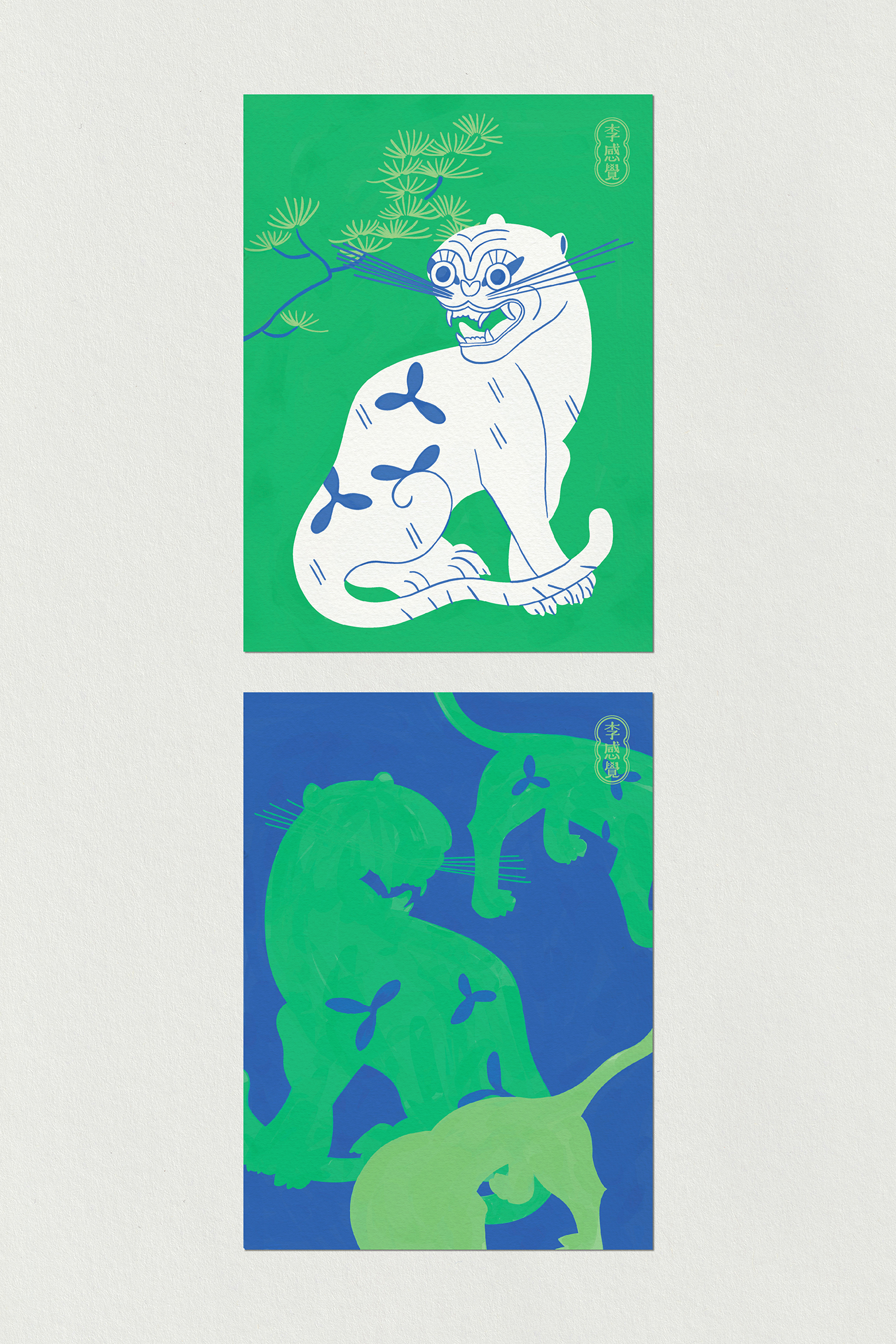 - 전통적인 그림 소재인 호랑이를 독특한 표현으로 재해석하여 현대적인 감각이 느껴집니다.