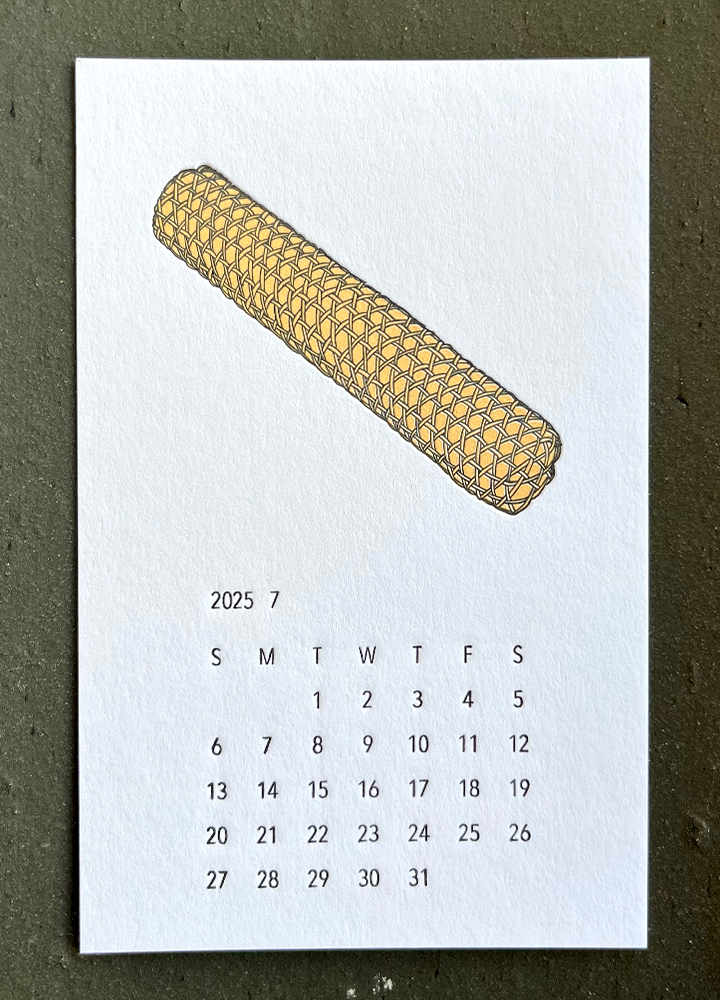 - 프레스모멘트의 프로젝트 브랜드 '아취(雅趣)'는 고아한 정취 또는 그런 취미라는 의미입니다. 아취를 다룰 수 있는 사물은 전통과 현대를 넘나들지만 2025년 월력에서는 전통적인 사물들 중에서 현재에도 사용되거나 아름다운 물건으로 남아있는 것들에 초점을 맞춰 그림을 그리고 레터프레스 인쇄를 하였습니다.