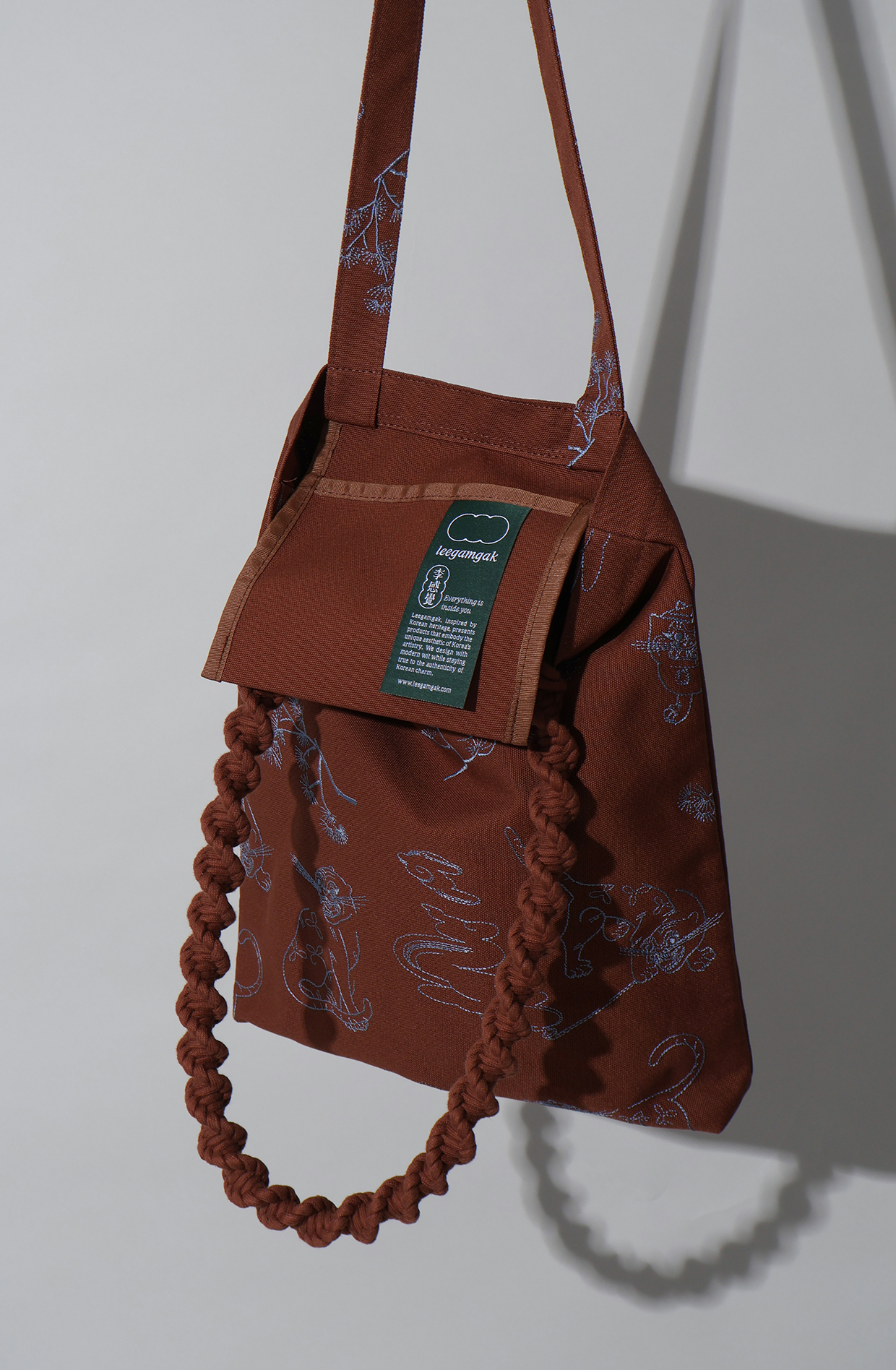 - 무섭게 포효하는 호랑이가 아닌, 여러 이야기 속 친근한 호랑이들을 자수로 담아내 호랑이를 든든한 친구로 둔 호담국의 계보를 잇는 가방을 만들었습니다. 이것이야말로 당대 가장 두려웠을 맹수를 받아들인 우리 조상들의 위트 넘치는 모습일 것입니다.