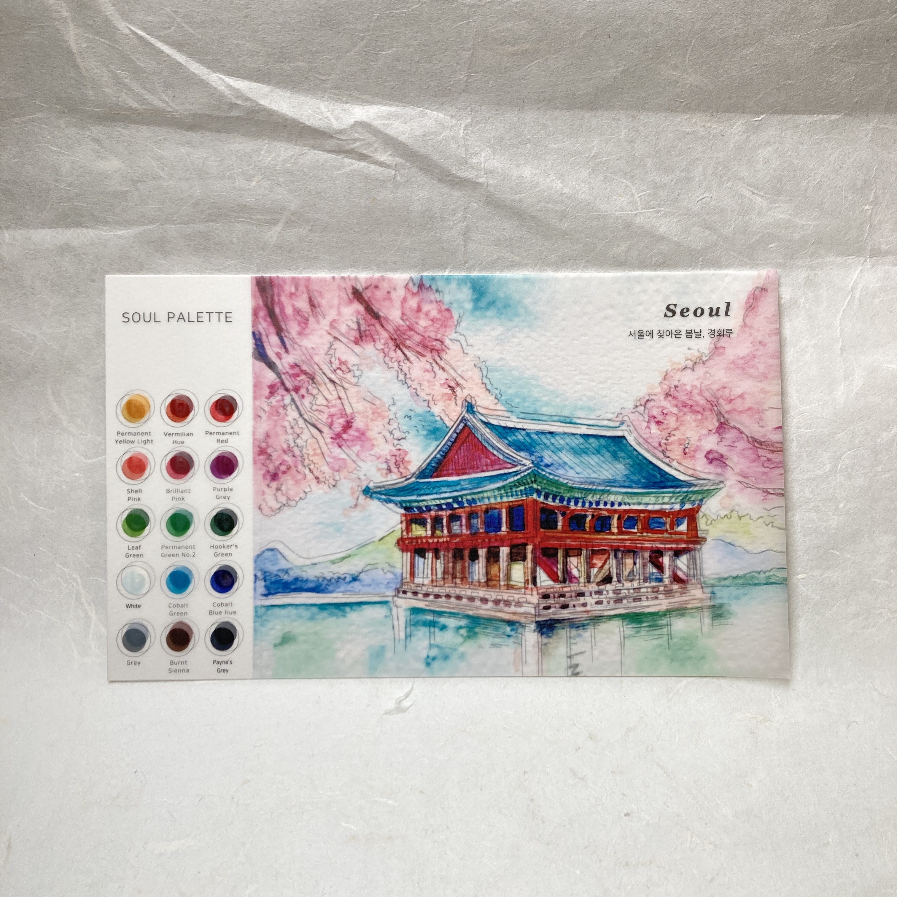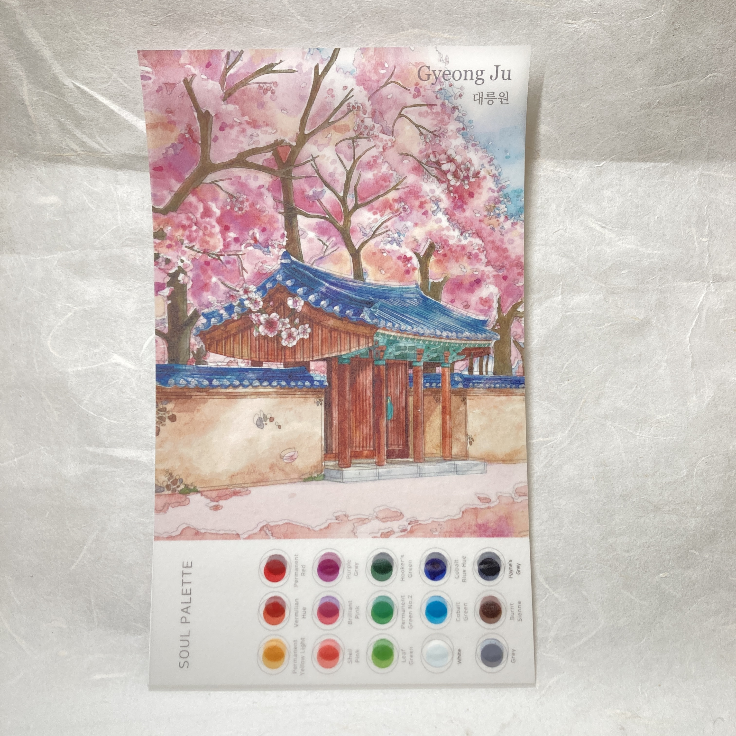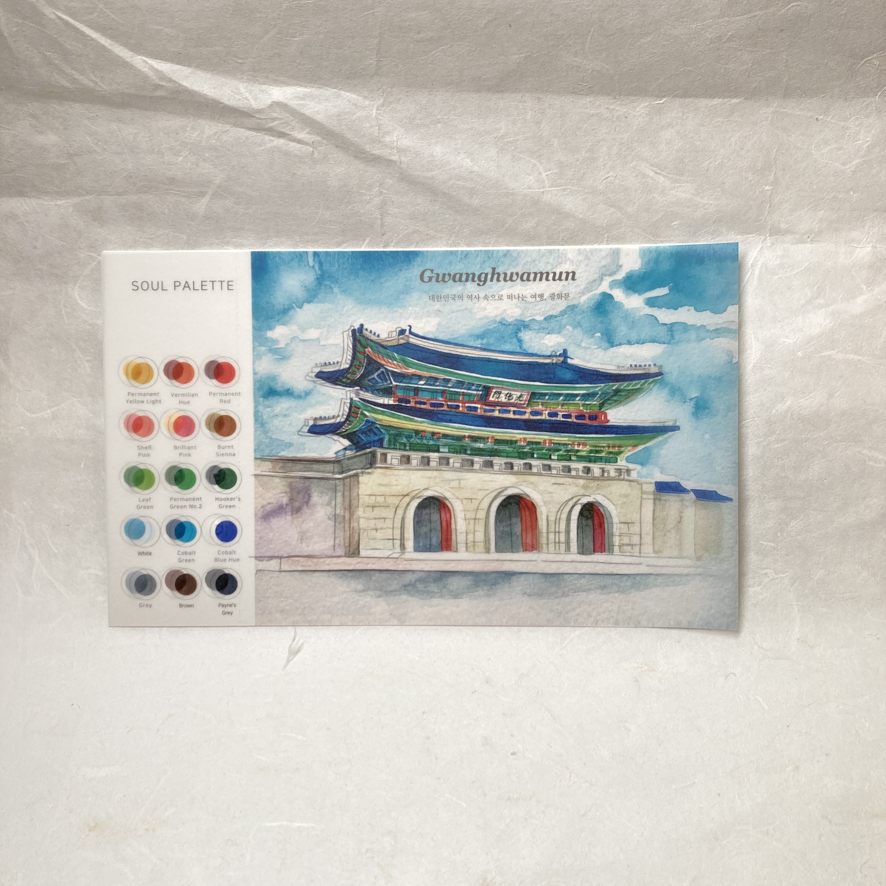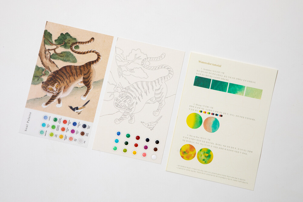This is a watercolor coloring postcard kit that lets you color beautiful Korean places and folk paintings with watercolors yourself.