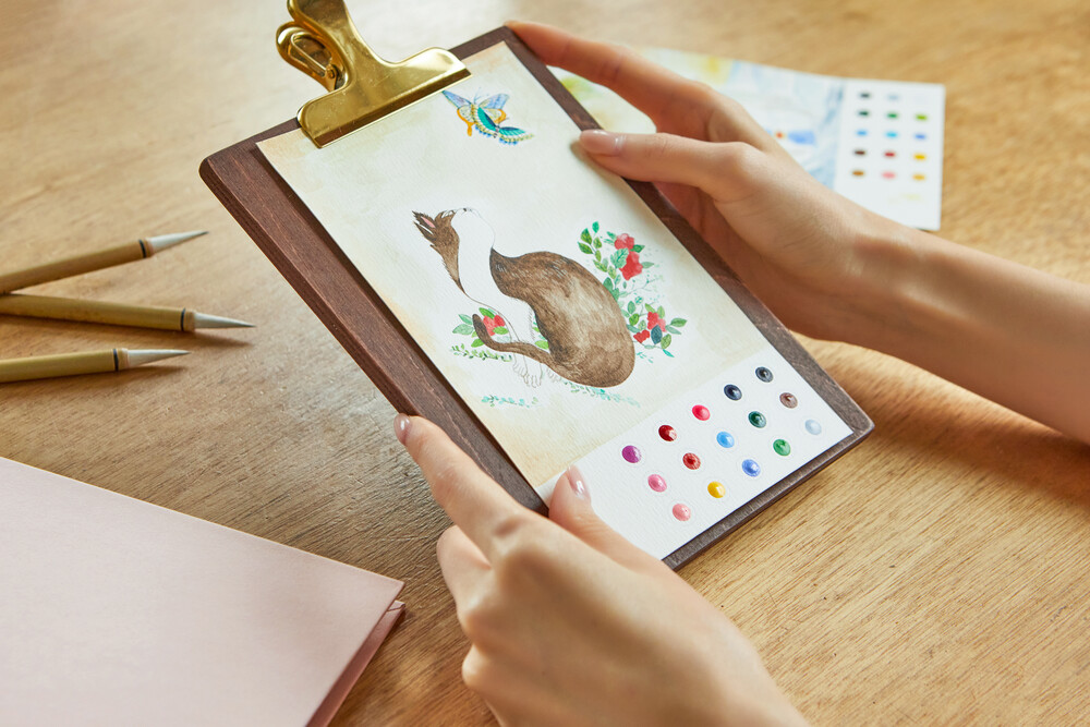 - 도화지 뒷면에 엽서처럼 글을 쓸 수 있는 공간이 마련되어 있어 채색이 끝난 후 지인들에게 건강과 안녕을 바라는 마음을 전달할 수 있습니다.