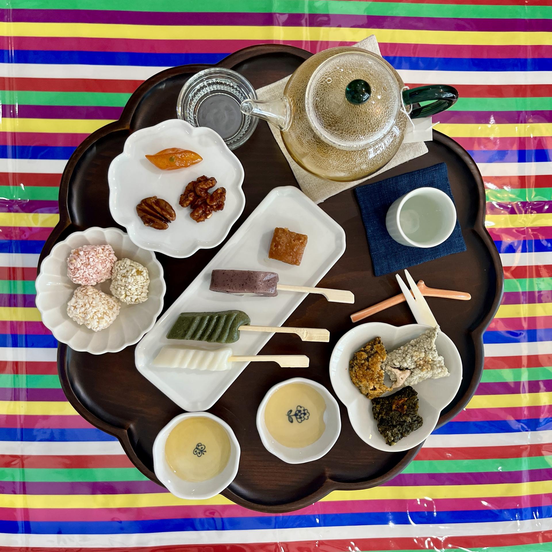 - The tea ceremony menu includes approximately more than 10 kinds of snacks and one bottle of tea.
