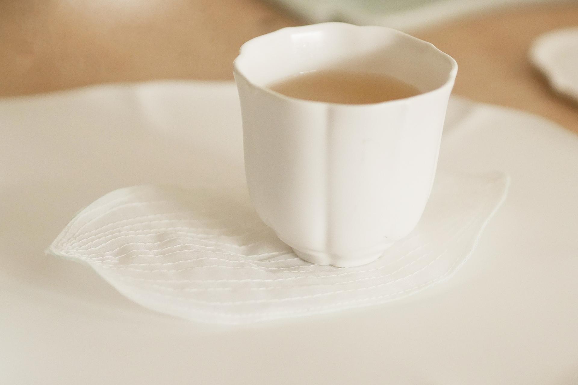 This handcrafted lotus leaf-shaped coaster is delicately crafted using a quilting technique. You can layer it in a variety of colors to create a variety of looks.