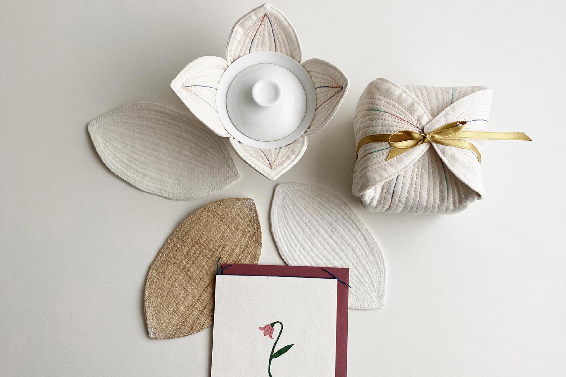 - 누비 연꽃잎 코스터는 연꽃의 섬세한 유선형의 곡선에서부터 시작합니다. 연속된 누비 실이 길게 뻗어 나가는 것은 장수를 상징하며, 빗줄기를 연상시키는 누비골은 풍요로움을 상징합니다.