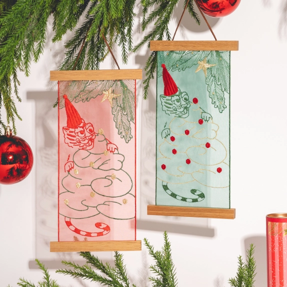 This hanging poster is a modern reinterpretation of a folk painting, delicately embroidered on organza.