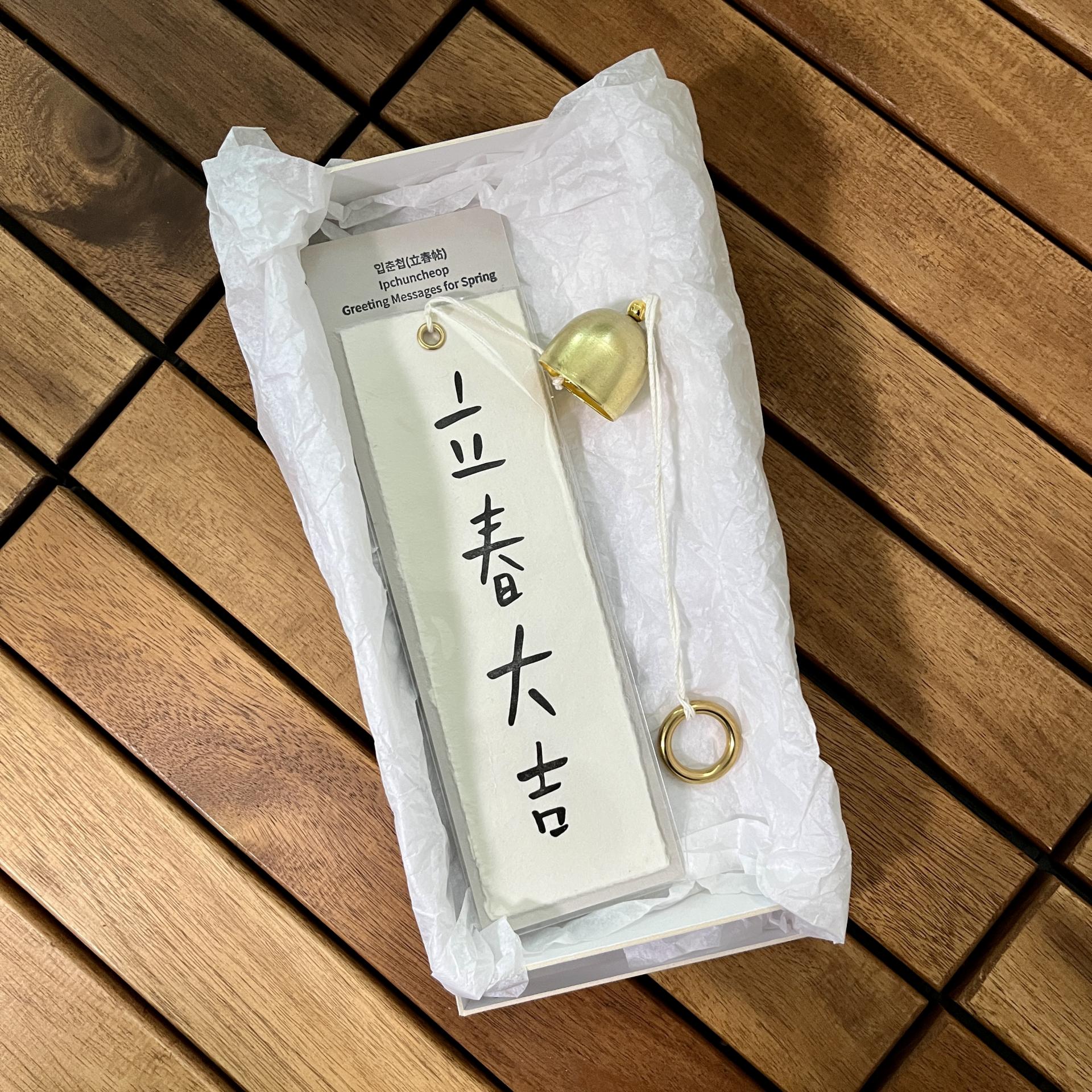 - 입춘첩(입춘대길, 건양다경 앞뒷면으로 총 1매), 풍경종, 황동고리 포함 전체 약 40cm