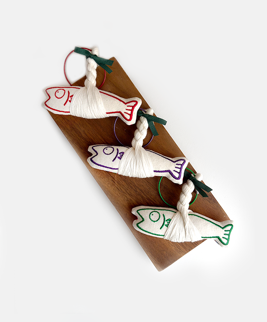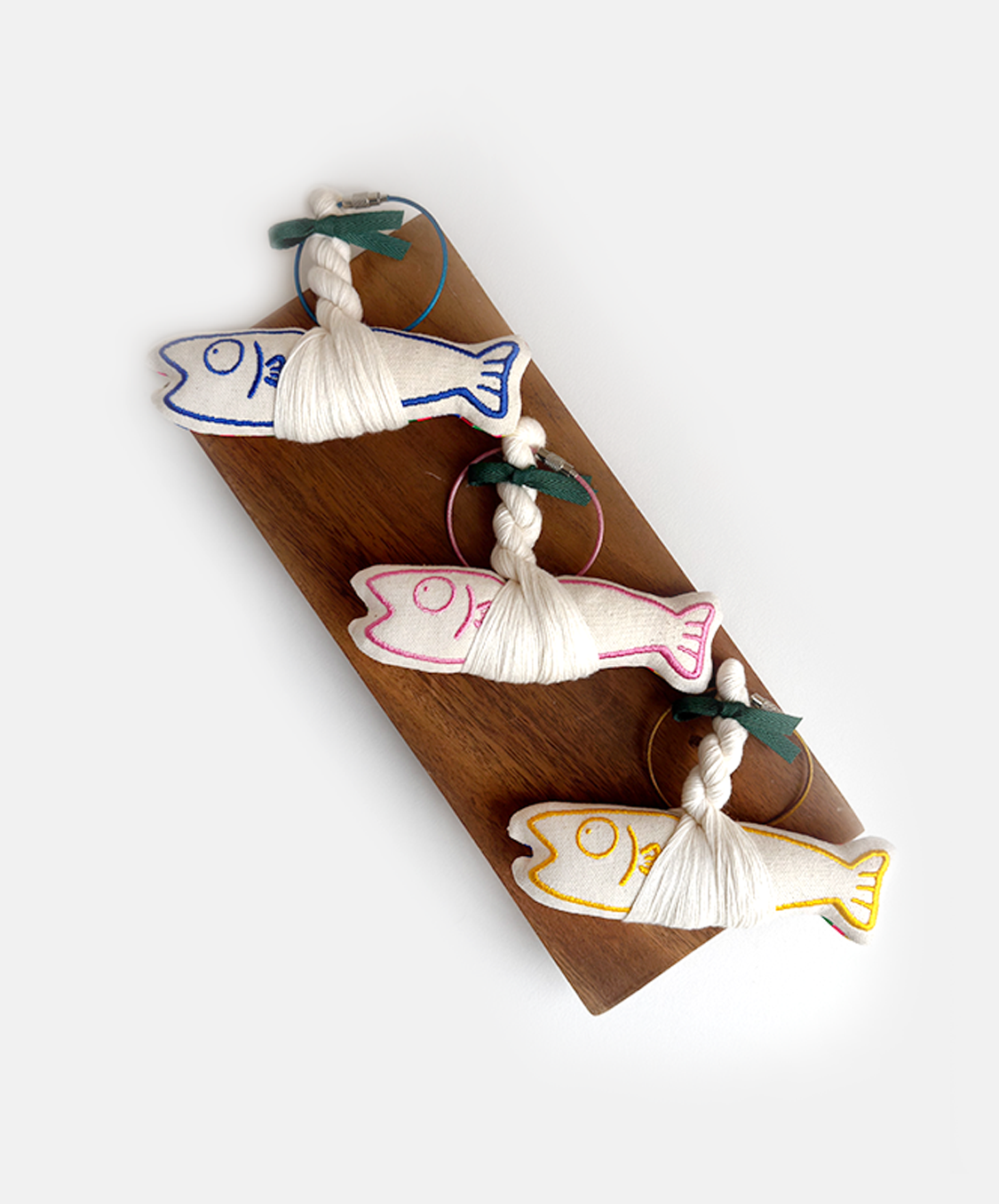 This keyring is a fabric-based reinterpretation of the amulet pollack, which is said to ward off bad luck and help everything go smoothly.