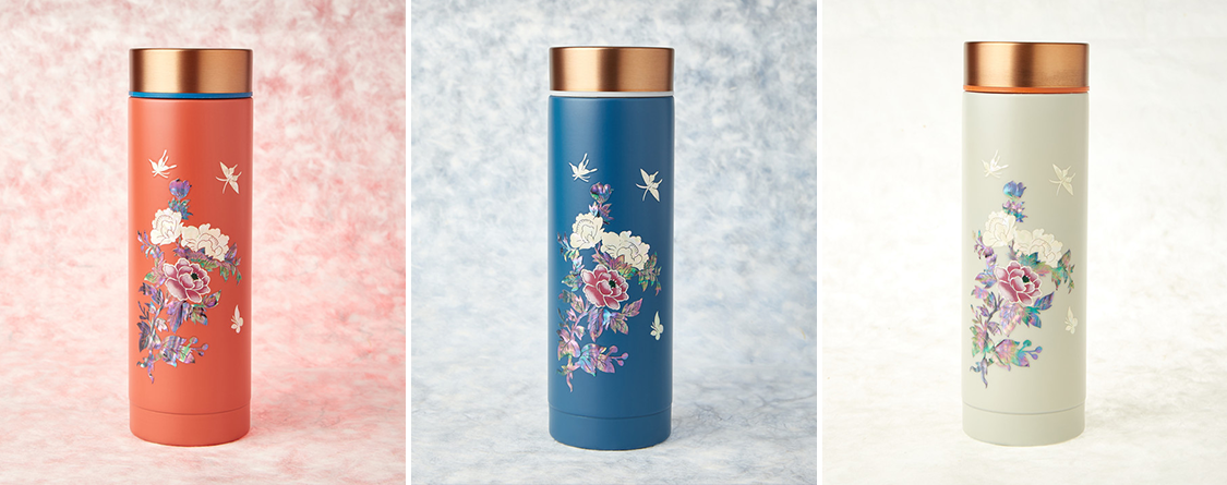 한국의 전통공예인 나전칠기로 장식하여 입체감과 조형미가 느껴지는 나전칠기 텀블러입니다.